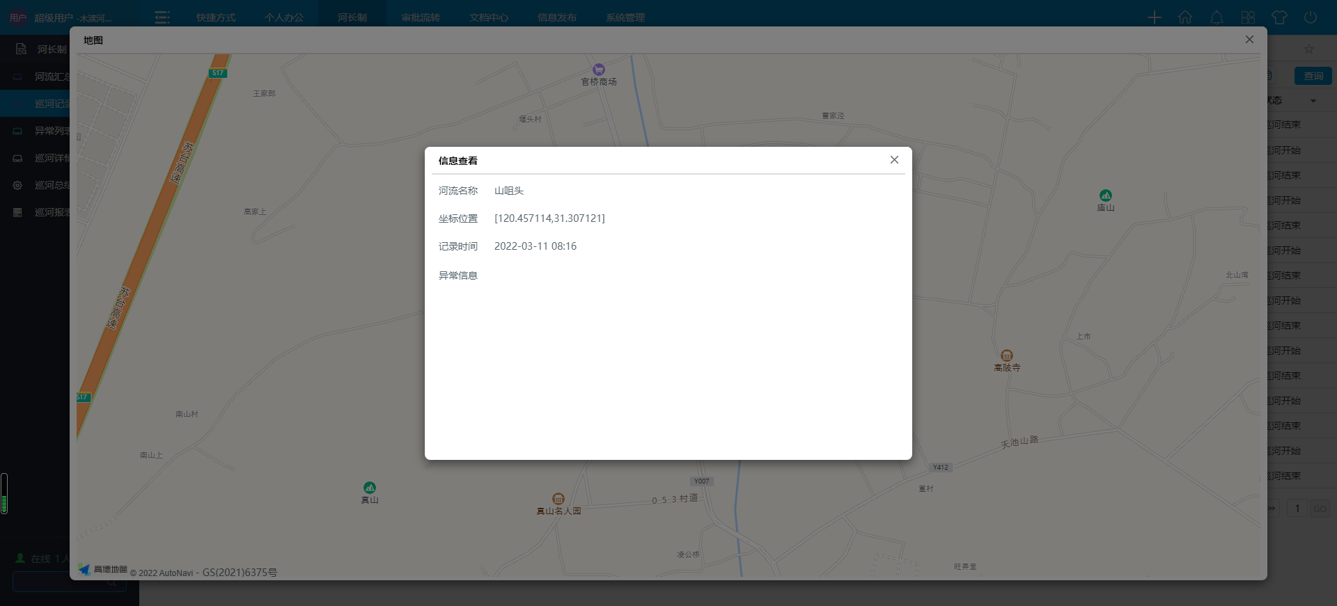 華天動力OA系統動態巡河圖,“一張圖”實現河長制數字化
